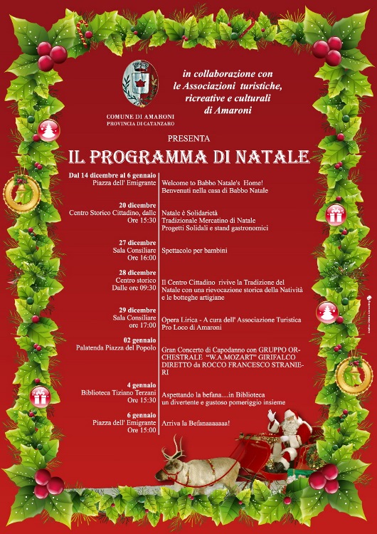Oggetto: Newsletter Comune di Amaroni: Programma di Natale 2014