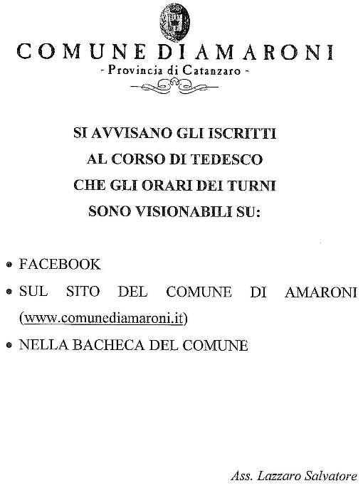 Oggetto: Newsletter Comune di Amaroni: CORSO DI TEDESCO - Turni