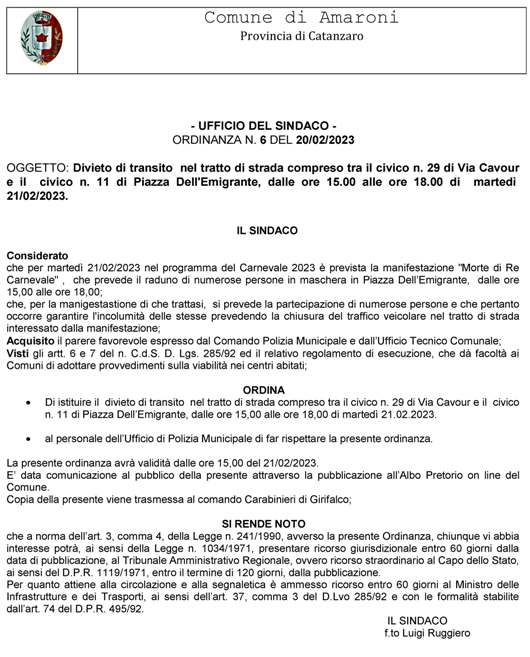 Ordinanza n. 5 del 20/02/2023