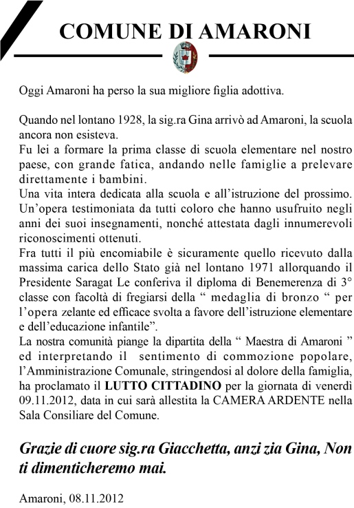 Oggetto: Newsletter Comune di Amaroni: Lutto Cittadino