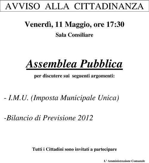 Oggetto: Newsletter Comune di Amaroni: Assemblea Pubblica IMU