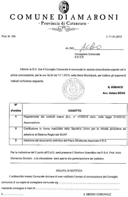 Oggetto: Newsletter Comune di Amaroni: Convocazione Consiglio Comunale