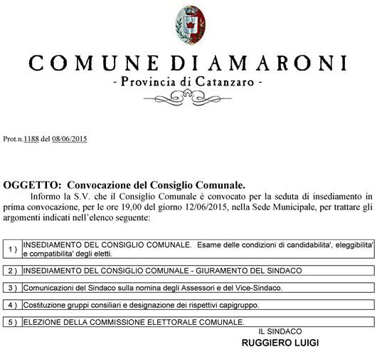 Oggetto: Newsletter Comune di Amaroni: Convocazione Consiglio Comunale