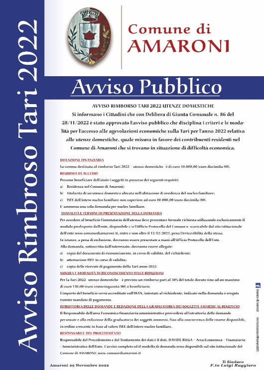 Avviso Rimborso TARI 2022