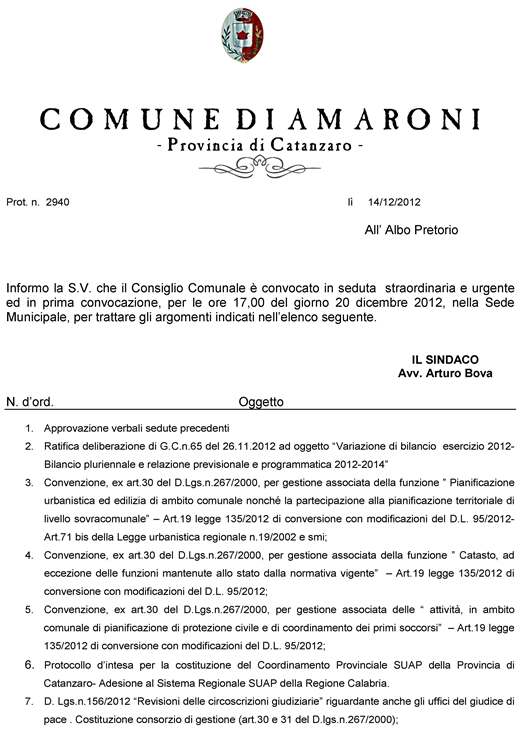 Oggetto: Newsletter Comune di Amaroni: Convocazione Consiglio Comunale